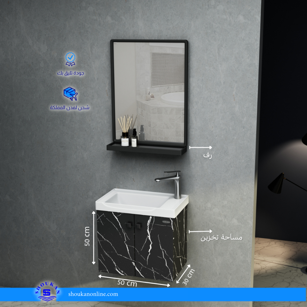 - التصميم المدمج: مقاس 50 سم يجعلها مناسبة جدًا للمساحات الصغيرة، مثل الحمامات الصغيرة أو غرف الضيوف، حيث يمكن تثبيتها بسهولة دون أن تشغل مساحة كبيرة.